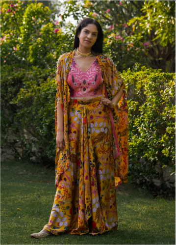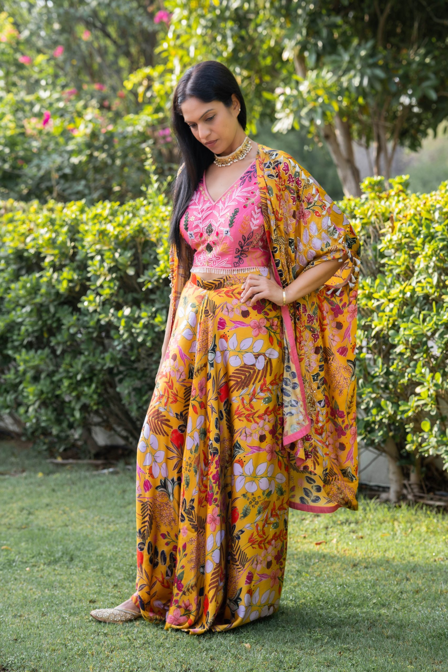 Select options This product has multiple variants. The options may be chosen on the product page Quick ViewYellow and Pink Draped Skirt and Cape Set