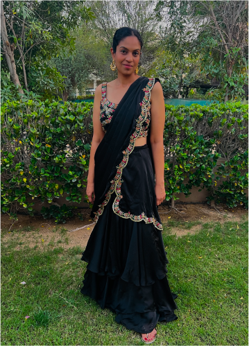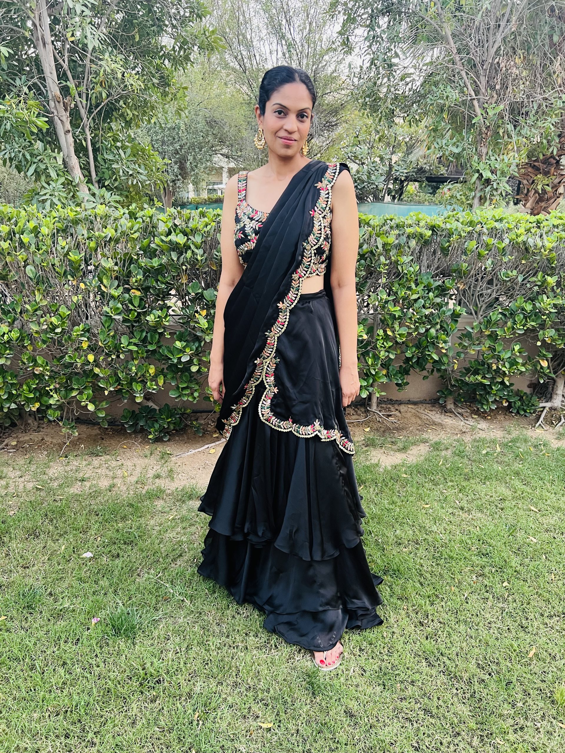 Select options This product has multiple variants. The options may be chosen on the product page Quick ViewBlack Pre- Stitched Waterfall Draped Saree and Blouse