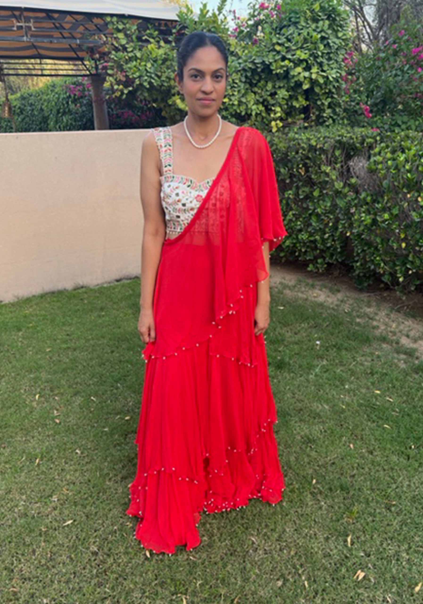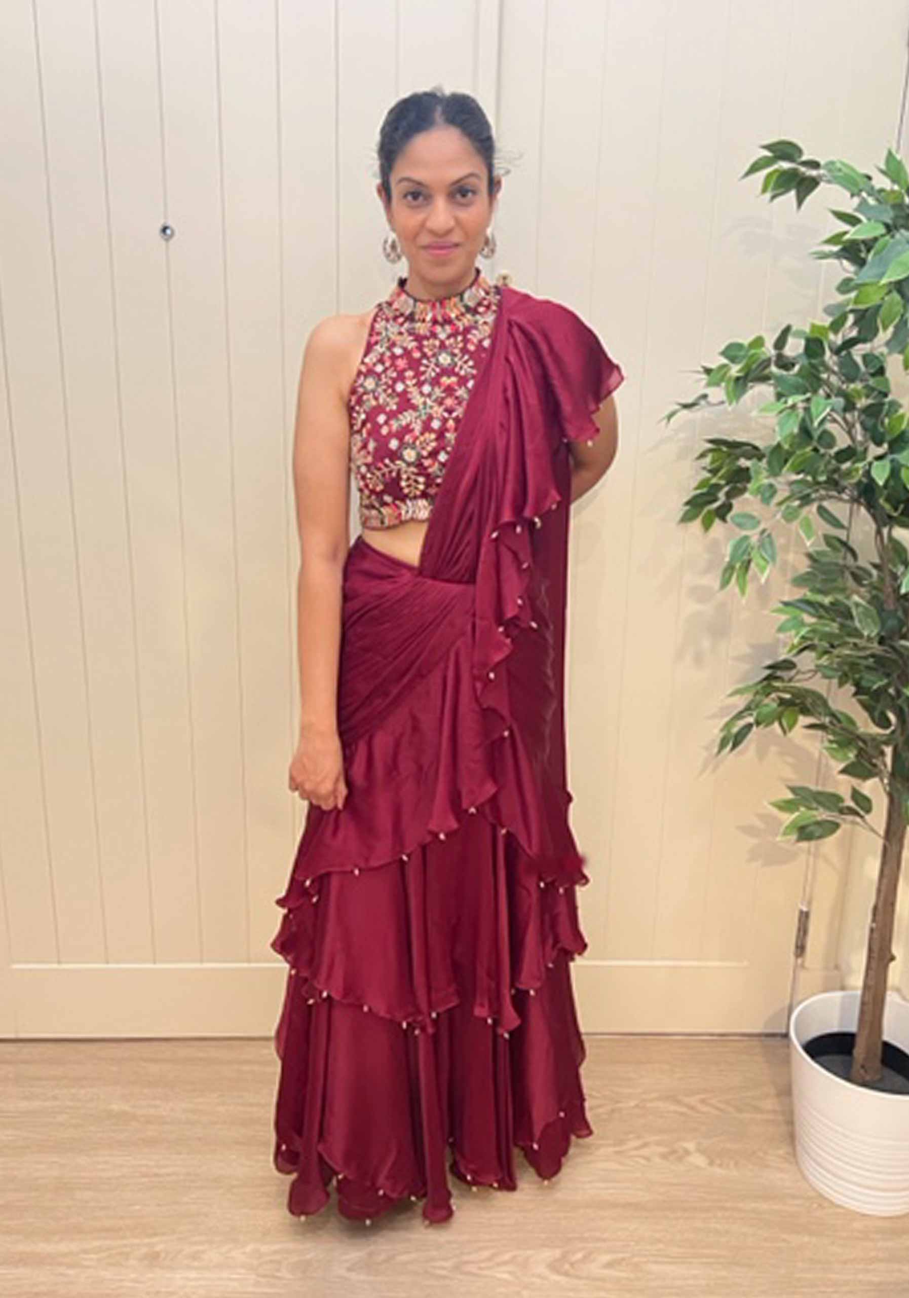 Select options This product has multiple variants. The options may be chosen on the product page Quick ViewWine Colored Pre- Stitched Waterfall Draped Saree and Blouse
