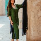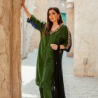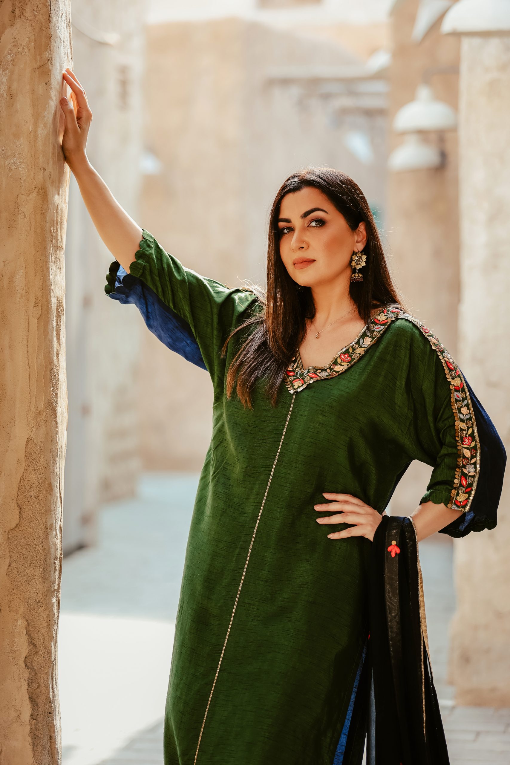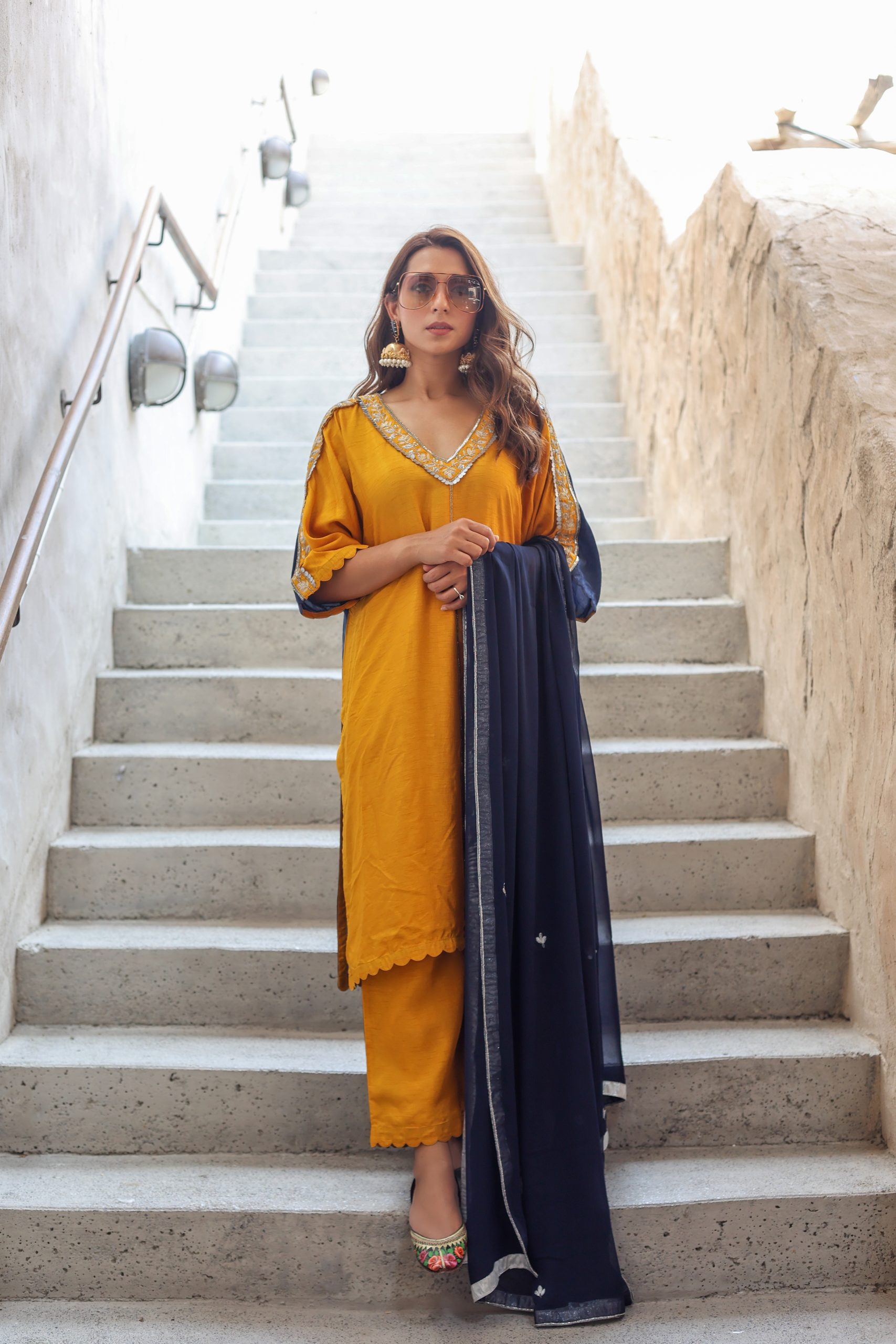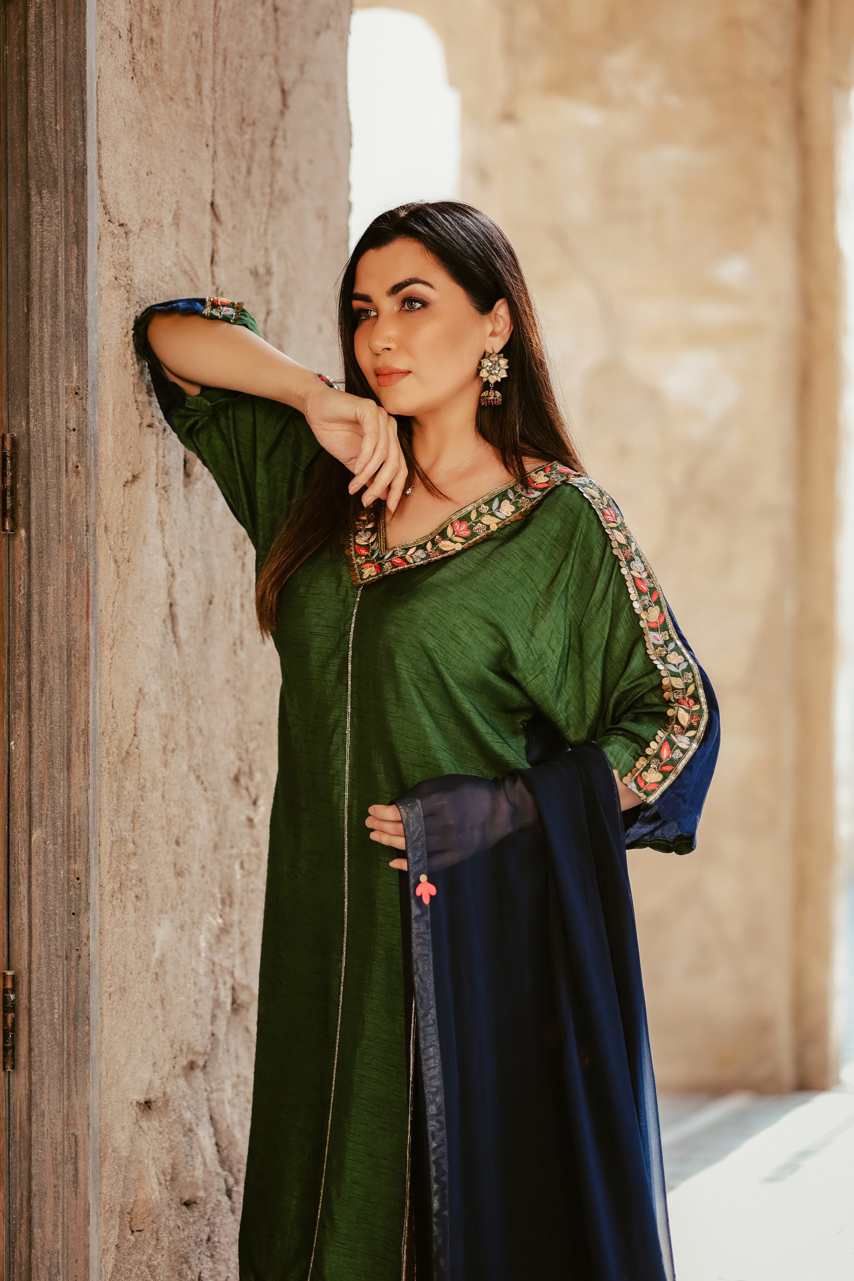Intricately hand embroidered Dual Toned Kurta and Pant with a matching Dupatta.