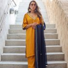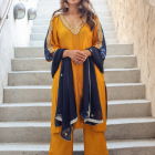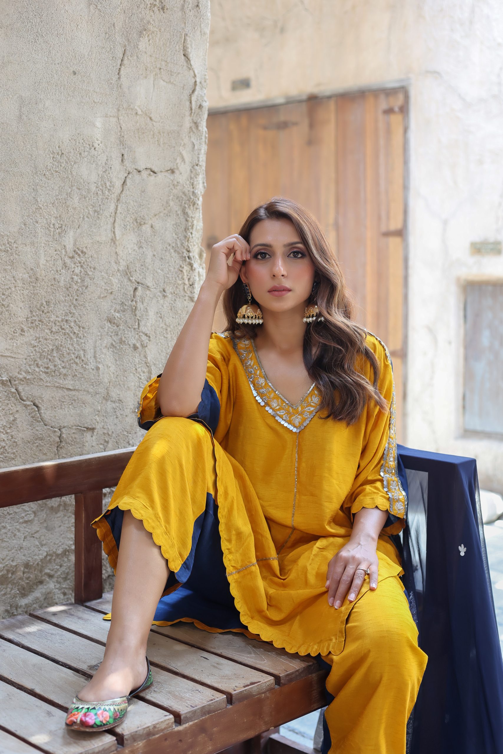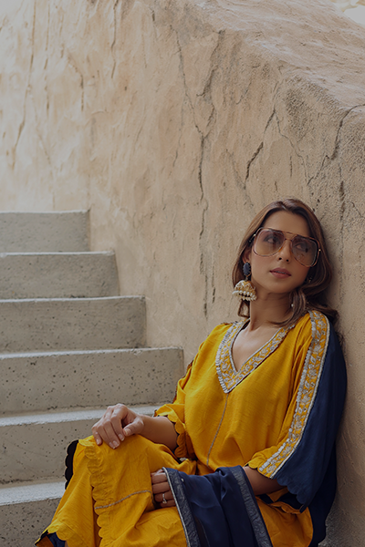 Intricately hand embroidered Dual Toned Kurta and Pant with a matching Dupatta.