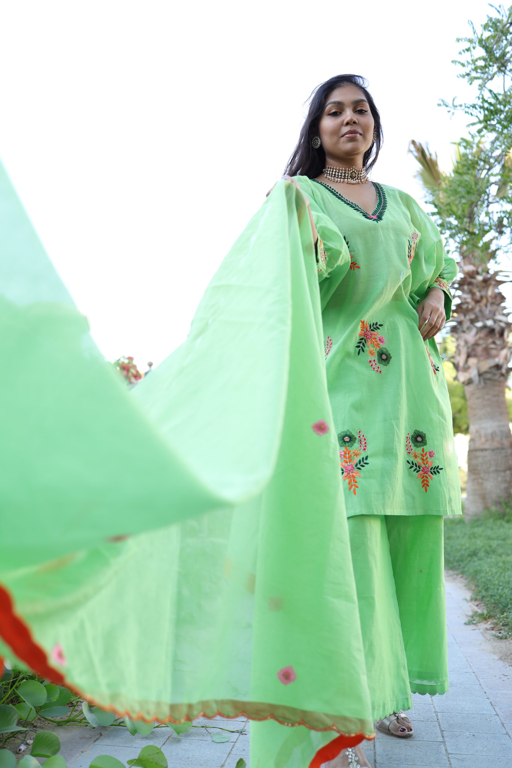Be the first to review “Phool Green Kaftan Kurta Set”