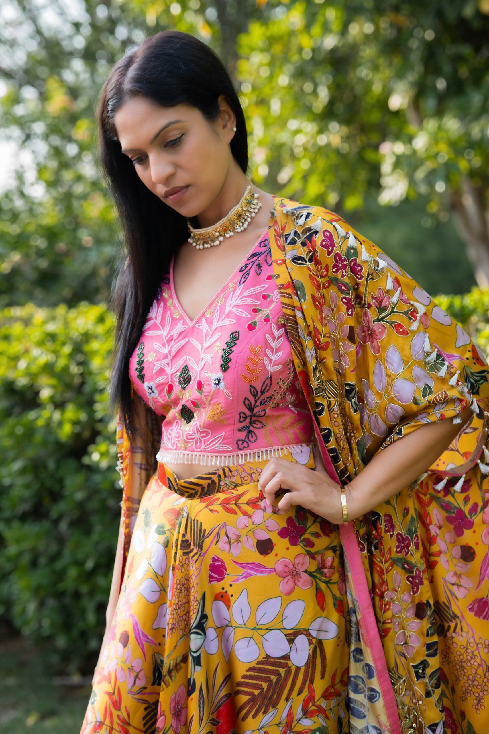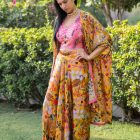 Be the first to review “Yellow and Pink Draped Skirt and Cape Set”