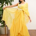 Be the first to review “Yellow Pre- Stitched Ruffled Saree and Blouse”
